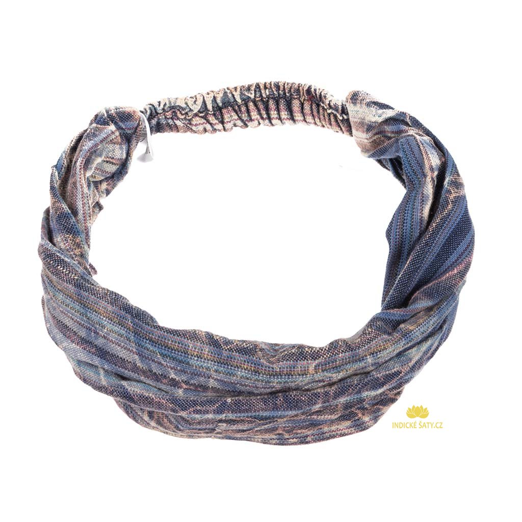 Látková čelenka do vlasů z pevné bavlny stonewash pruhovaná modrohnědá