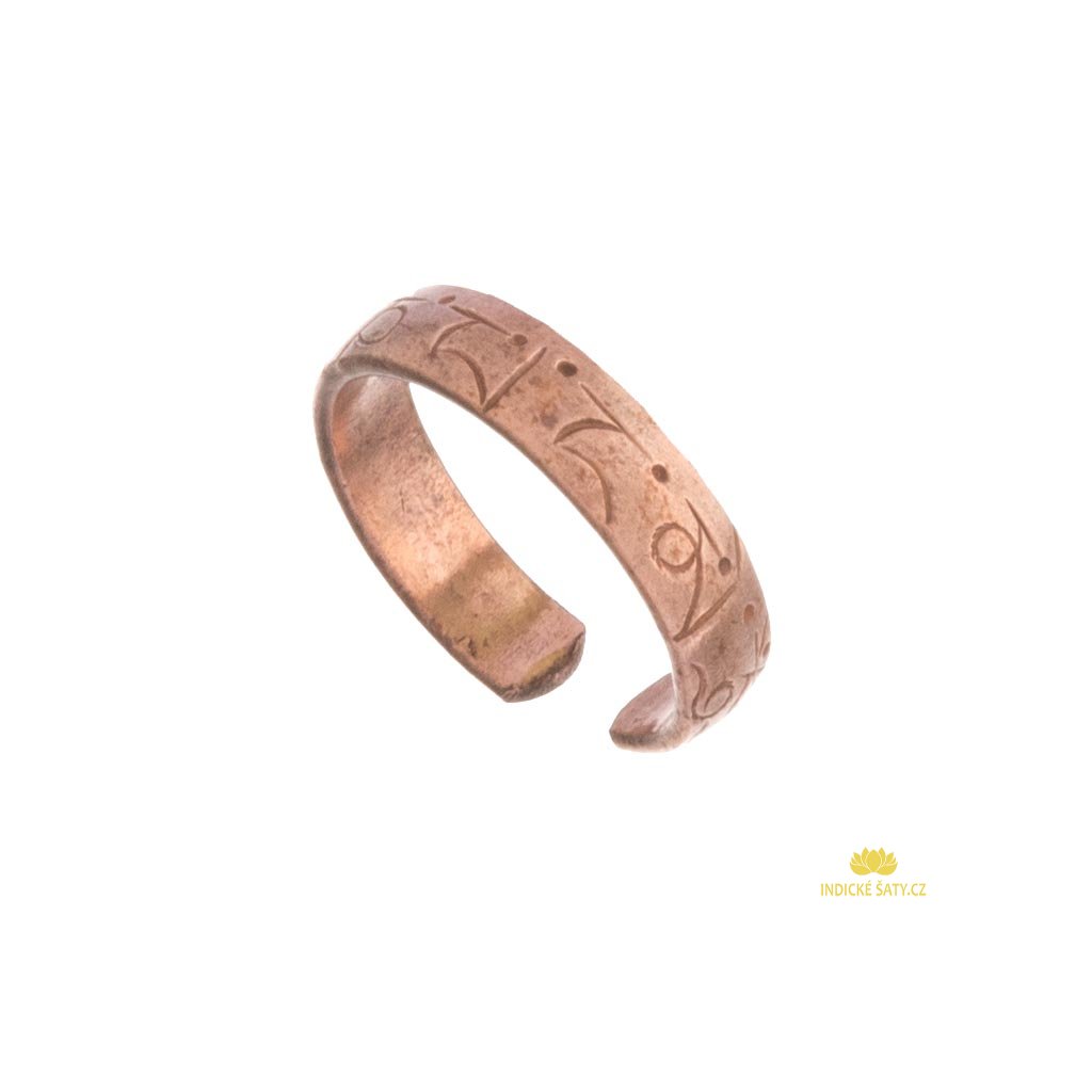 Měděný prsten s otevřenou velikostí. Více v popisu níže.