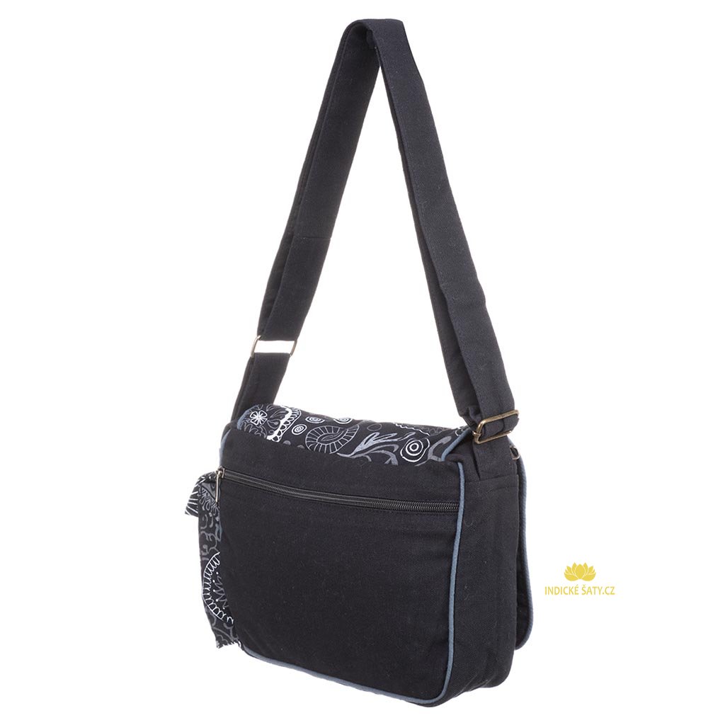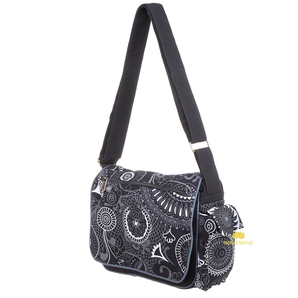 Nepálská taška z pevné bavlny Design 20 x 25 cm černobílá