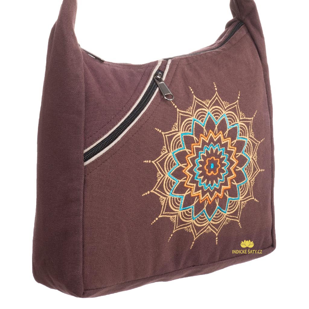 Nepálská taška z pevné bavlny Mandala 25 x 25 cm hnědá