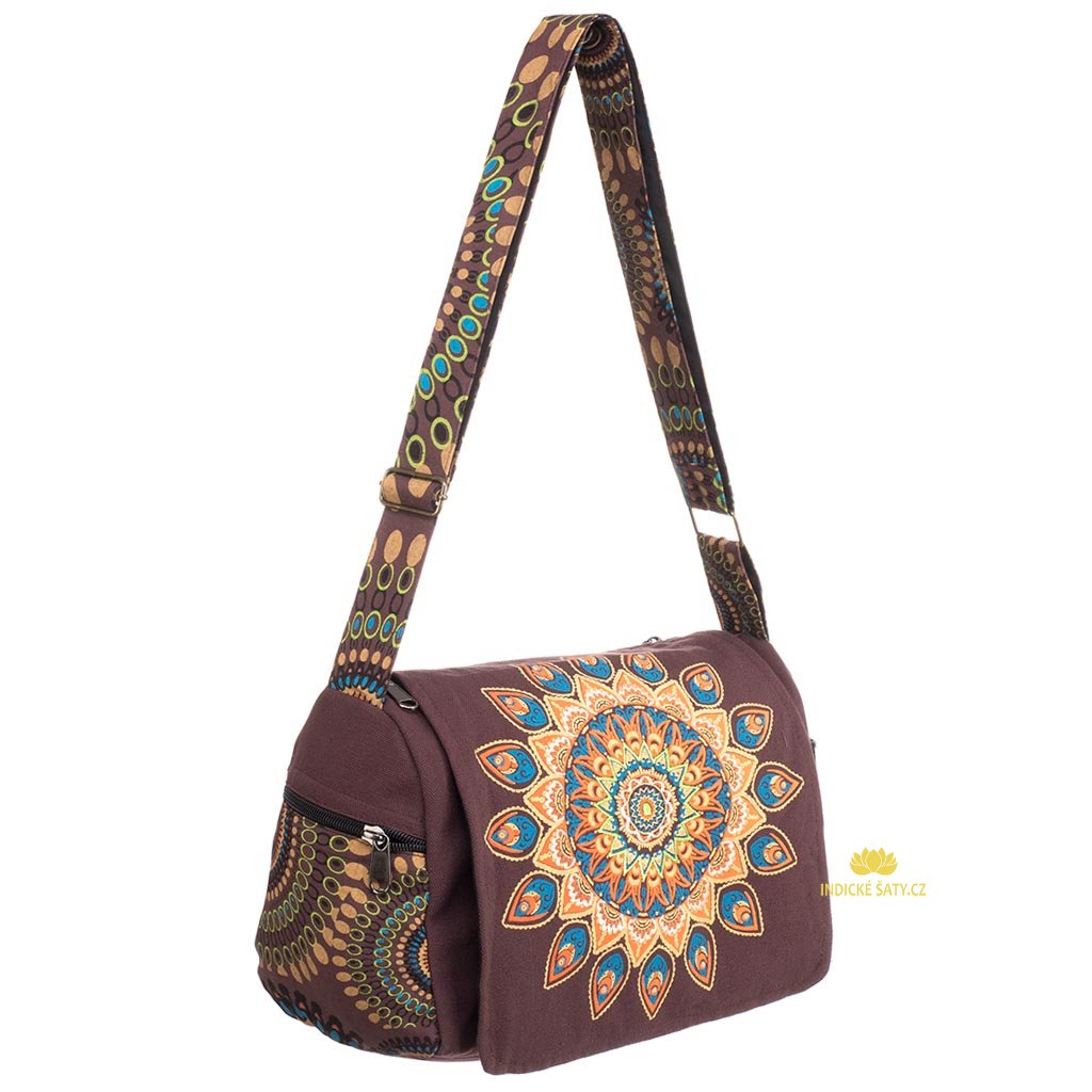 Nepálská taška z pevné bavlny Mandaly 30 x 25 cm hnědá