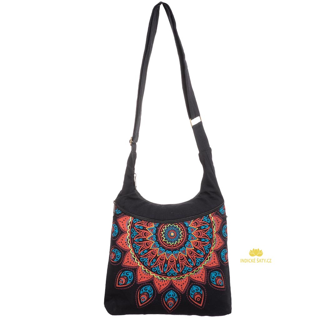 Nepálská taška z pevné bavlny Vyšívaná mandala 30 x 30 cm červenočerná