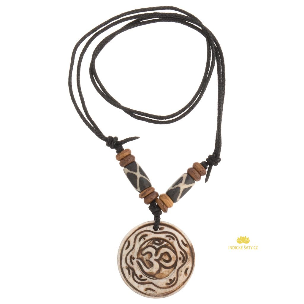 Óm přívěšek z kosti na stahovací bavlnce hnědobílý