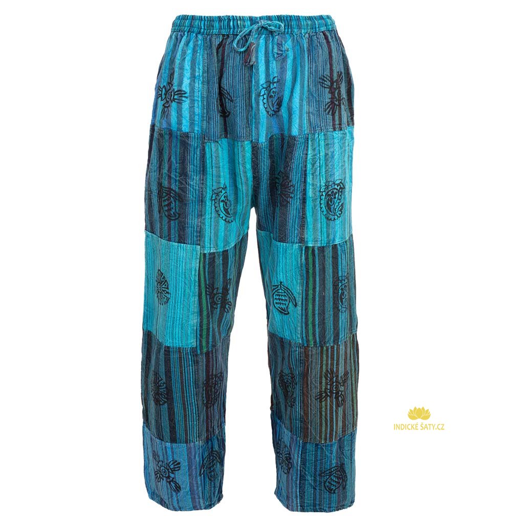 Patchworkové kalhoty z bavlny stonewash a tisk modré
