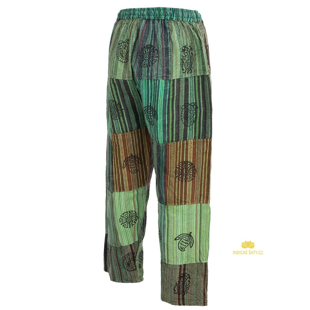 Patchworkové kalhoty z bavlny stonewash a tisk zelené