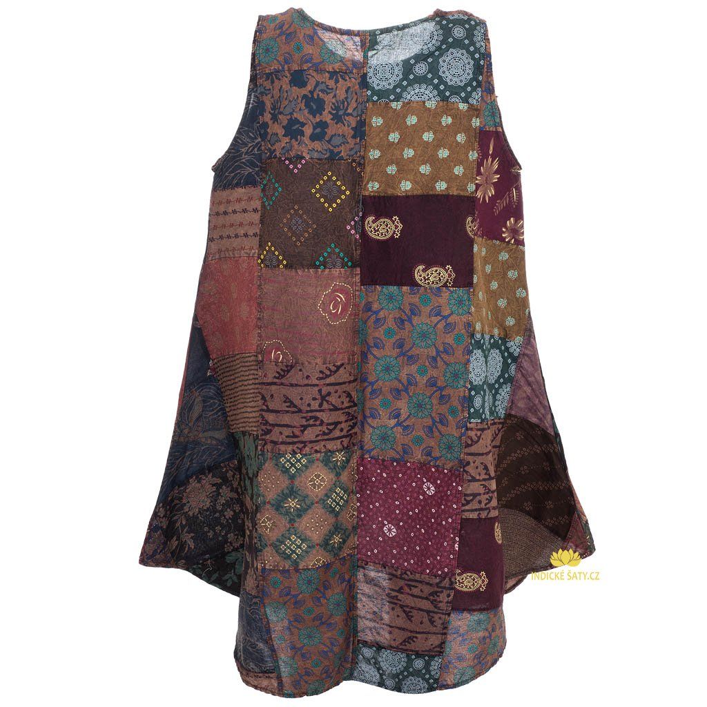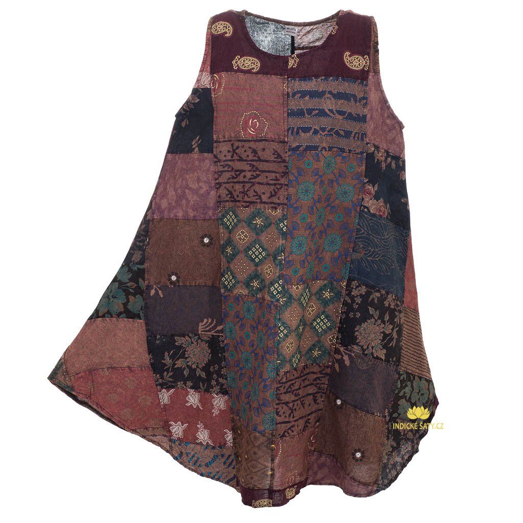 Patchworkové šaty ze stonewash bavlny Nagar hnědé (netříděné)