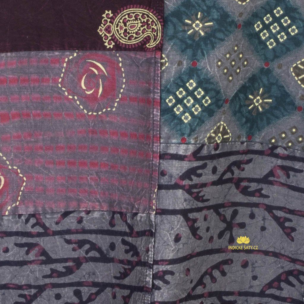 Šaty jsou z pevnější bavlny připomínající plátno, látka je vzorovaná tiskem a následně upravena metodou stonewash. Šaty jsou pěkně ušité stylem patchwork (jednotlivé čtverečky a obdelníky vzorované látky sešité k sobě), což v kombinaci s úpravou dělá každé šaty jedinečné.