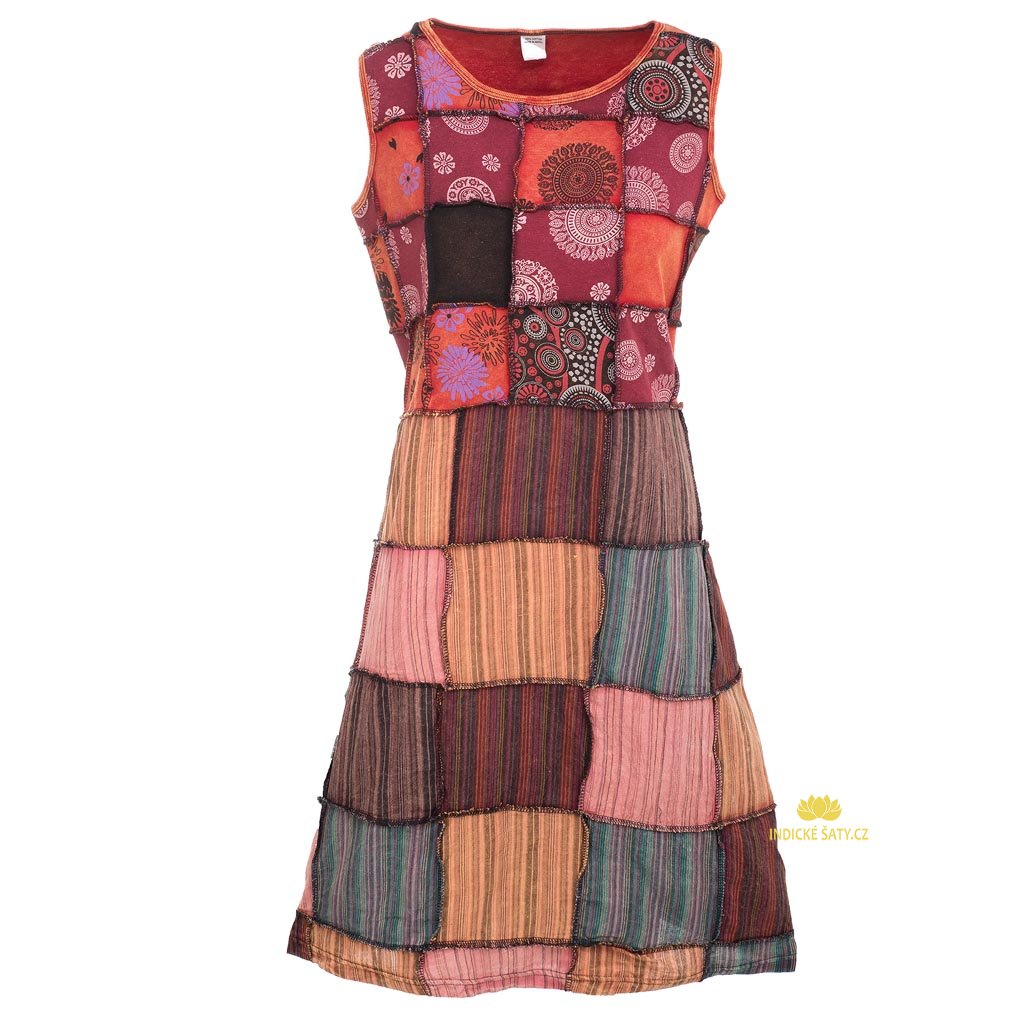 Dlouhé šaty na širší ramínka šité stylem patchwork. Více v popisu níže.