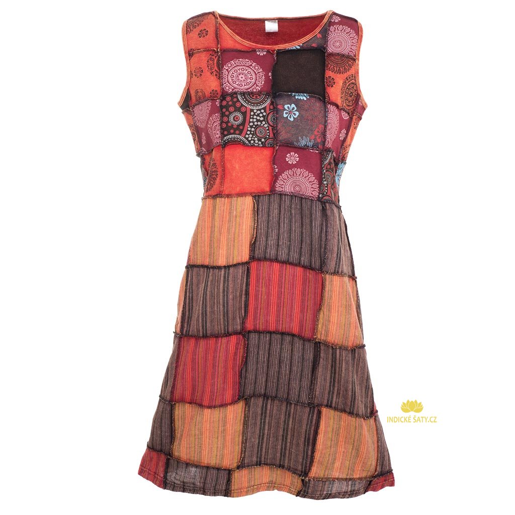 Dlouhé šaty na širší ramínka šité stylem patchwork. Více v popisu níže.