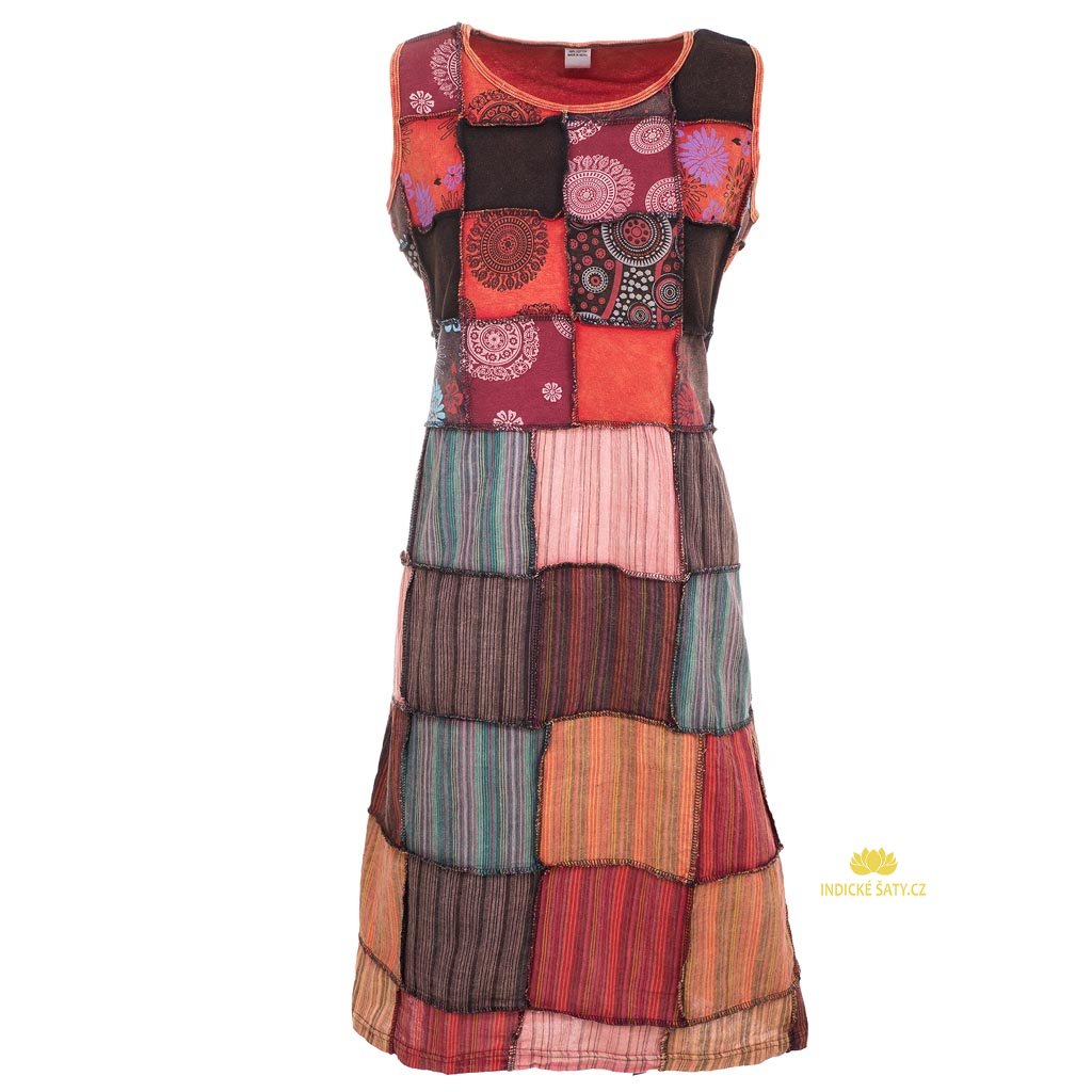 Dlouhé šaty na širší ramínka šité stylem patchwork. Více v popisu níže.