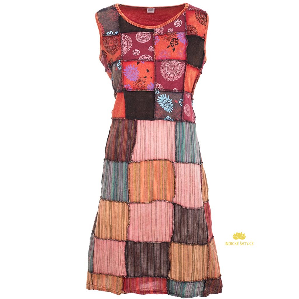 Dlouhé šaty na širší ramínka šité stylem patchwork. Více v popisu níže.