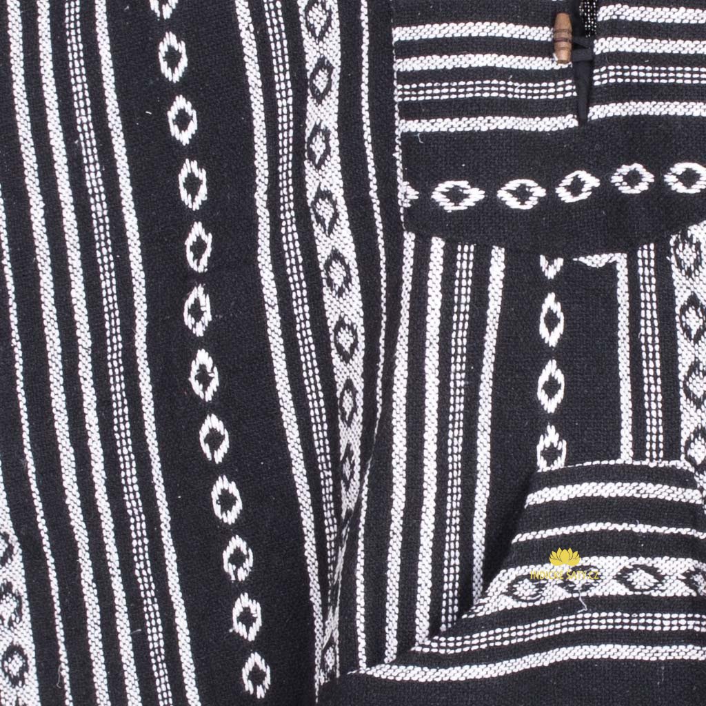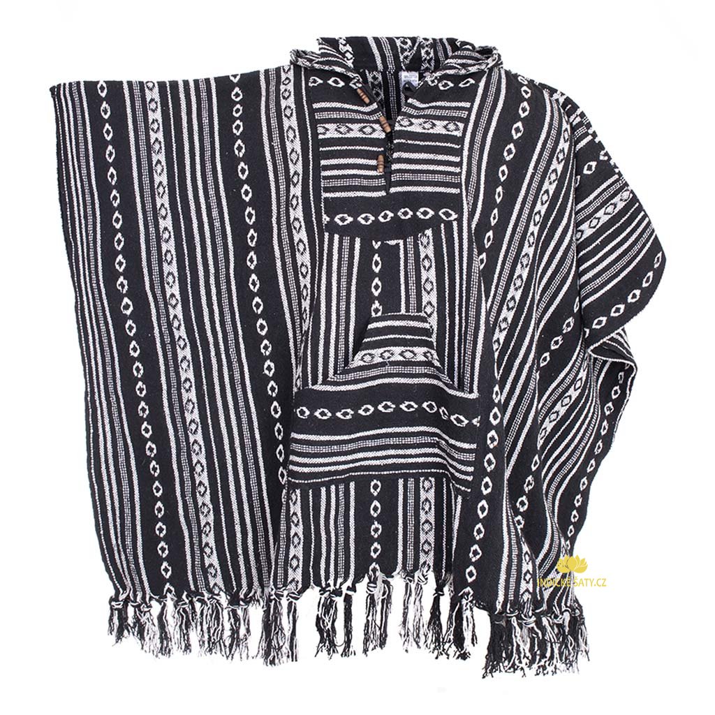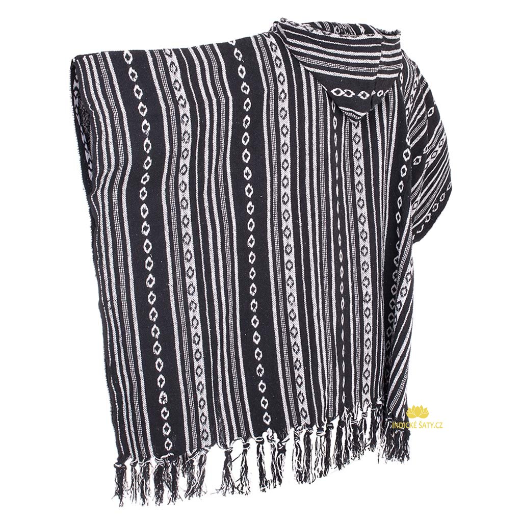 Pončo z velmi pevné bavlny, ručně tkané, s klokánkem. Více v popisu níže.