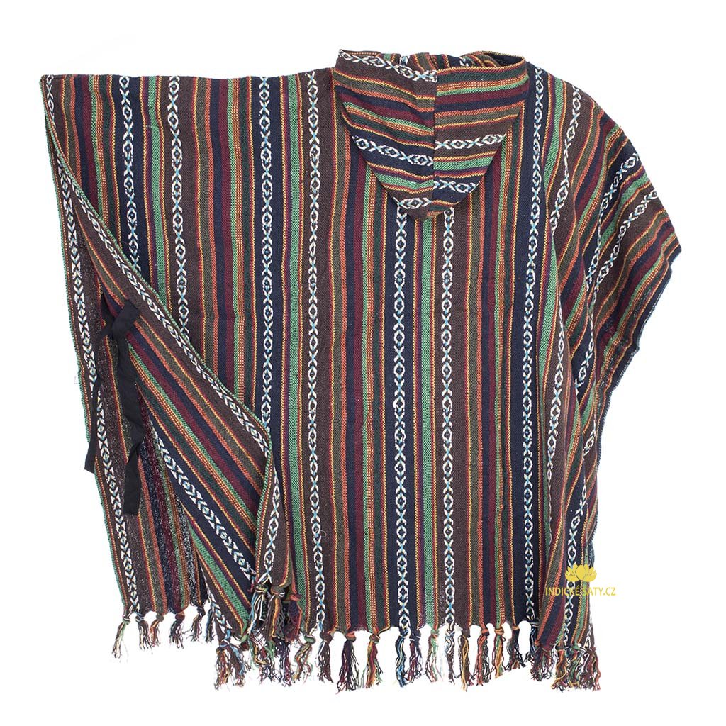 Pončo z velmi pevné bavlny, ručně tkané, s klokánkem. Více v popisu níže.