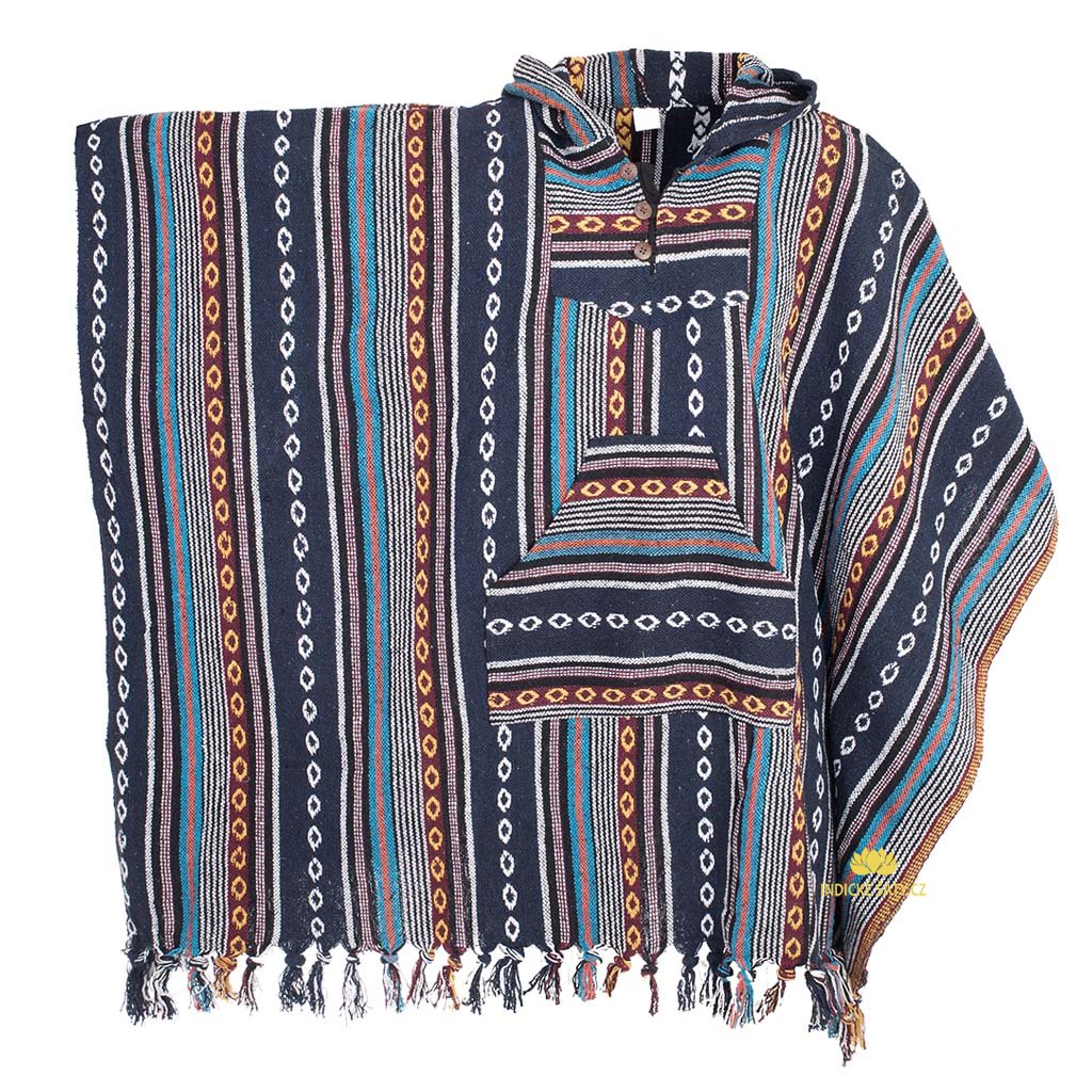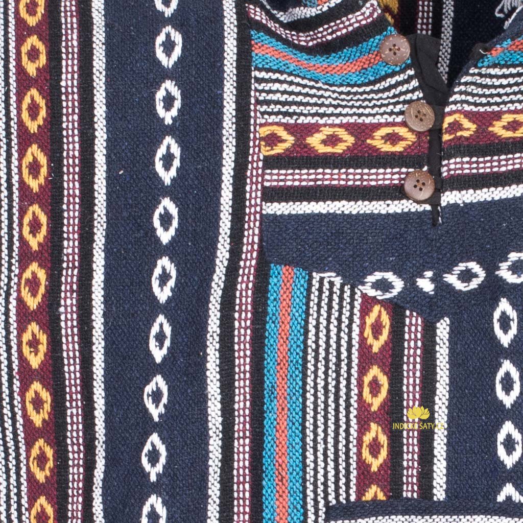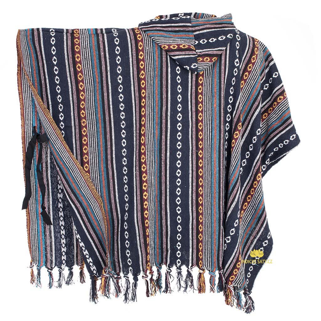 Pončo z velmi pevné bavlny, ručně tkané, s klokánkem. Více v popisu níže.