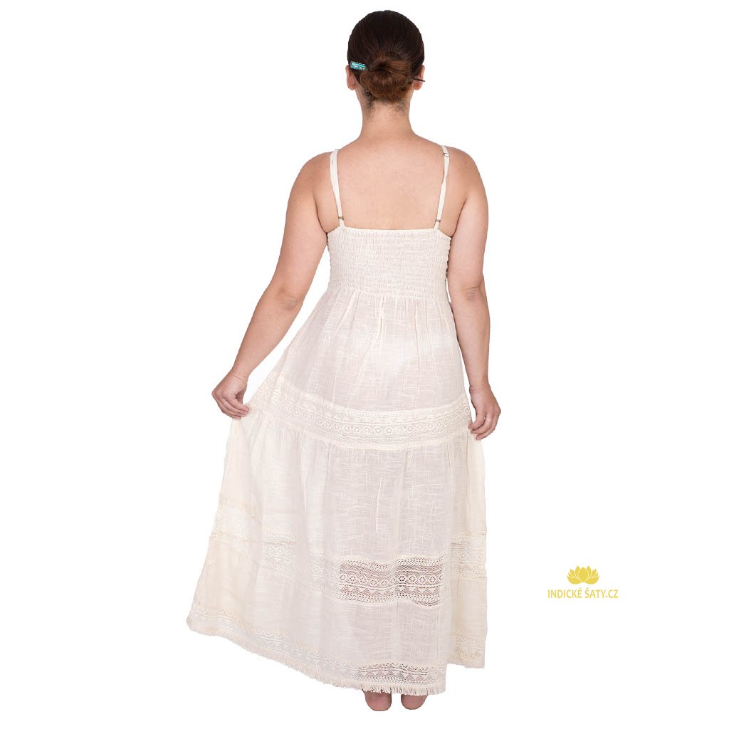 Šaty z lněné bavlny na tenká ramínka s krajkou