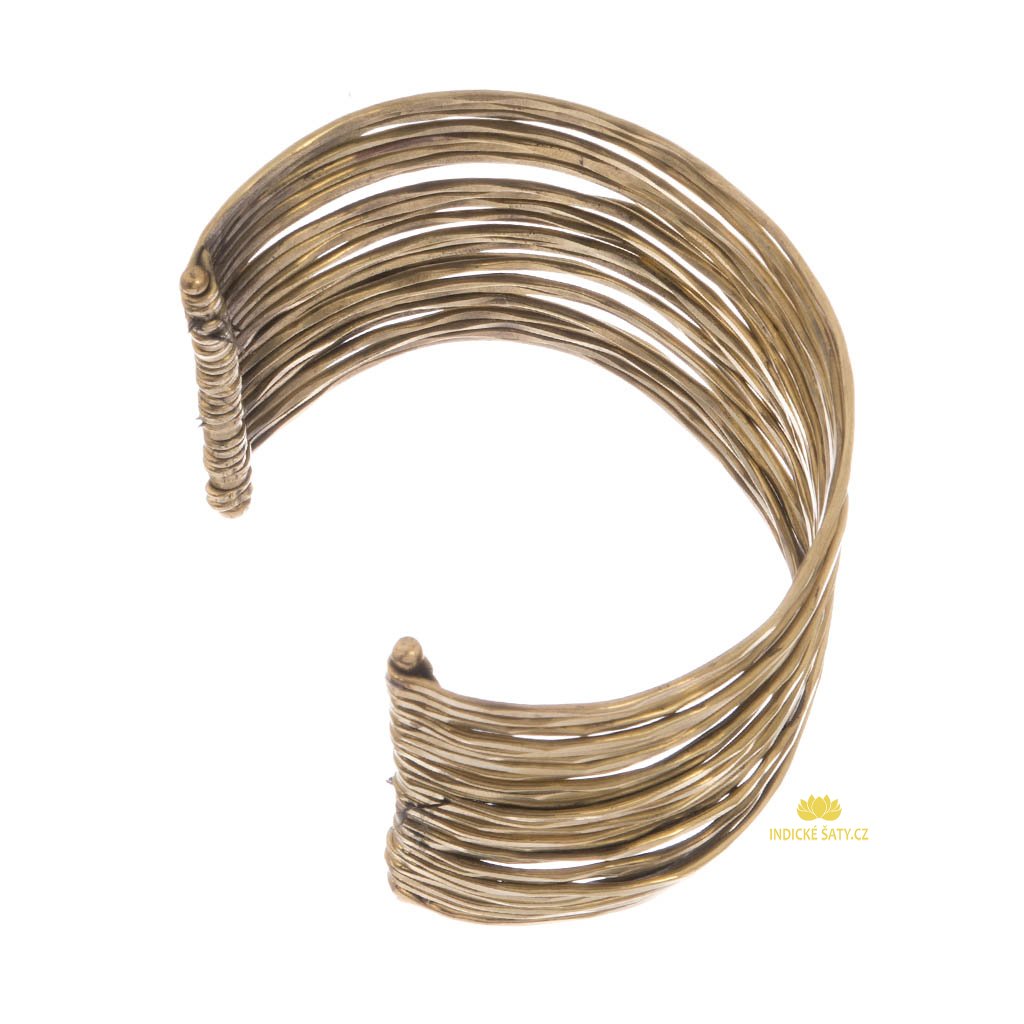 Tento Indický náramek je vyrobený z 26 mosazných pásků, které jsou vyklepávané (tepané) a na koncích spojené (pásky jsou mírně pohyblivé, ale náramek drží tvar).