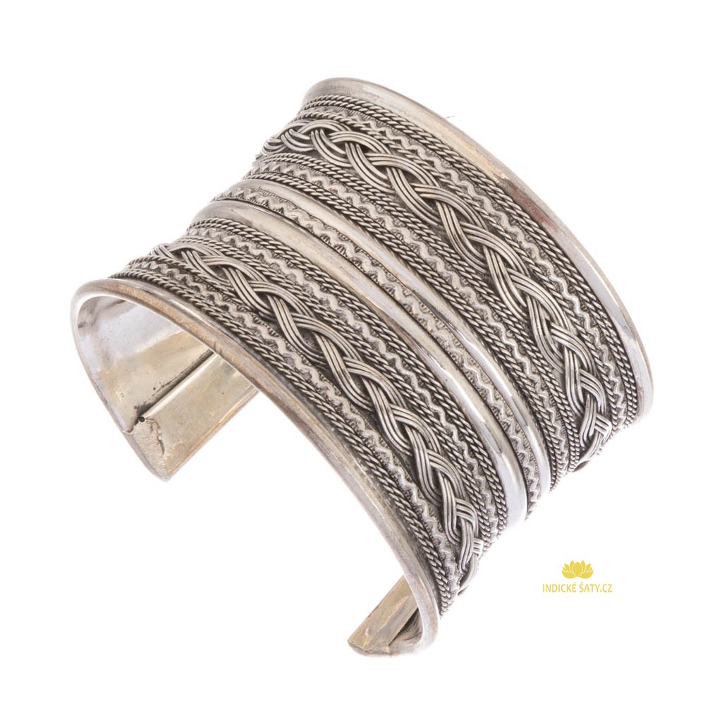 Široký kovový náramek z Indie Ornament (50 mm)