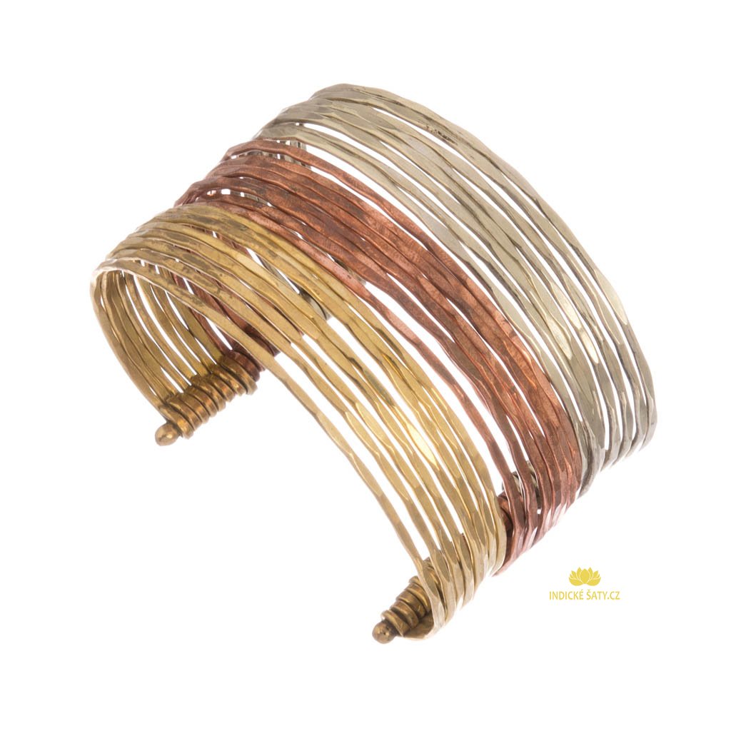 Široký náramek z Indie 3 kovy 24 pásků (50 mm)