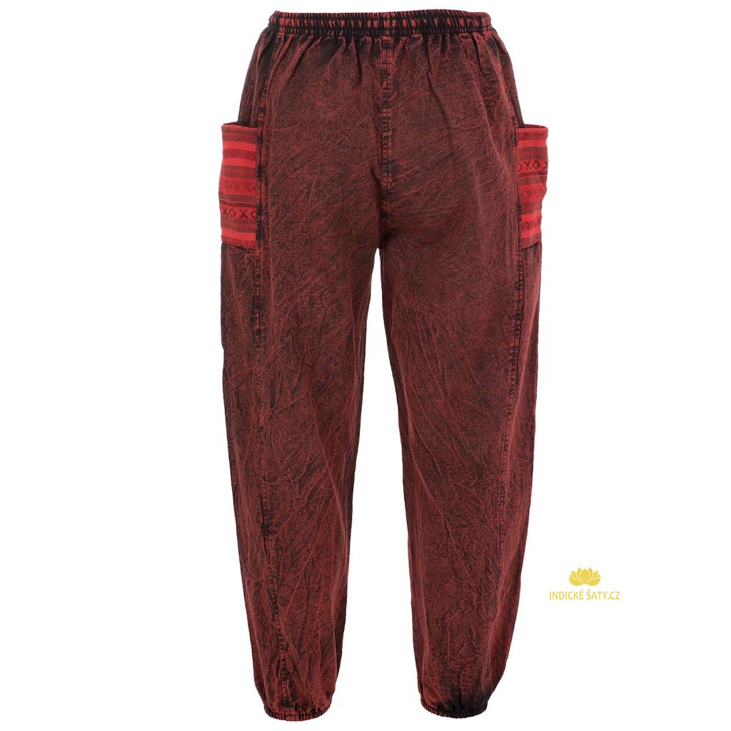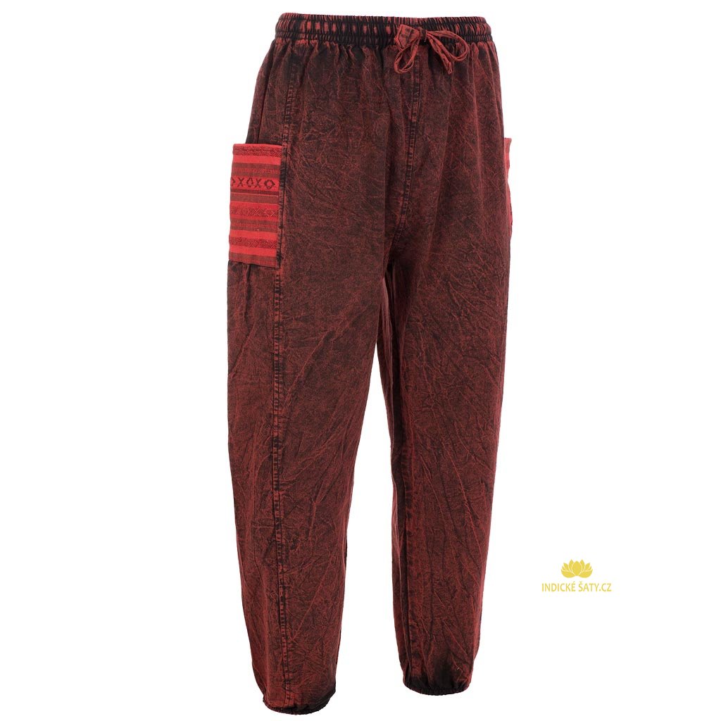 Stonewash kalhoty z pevnější bavlny tkané kapsy balun vínové