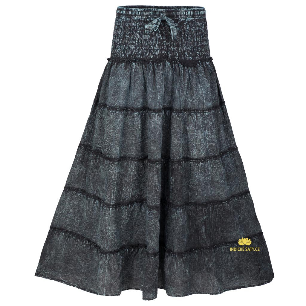 Dlouhá sukně s širokým žabičkováním ušitá z velkorysého množství lehké stonewashové bavlny. Více v popisu níže.