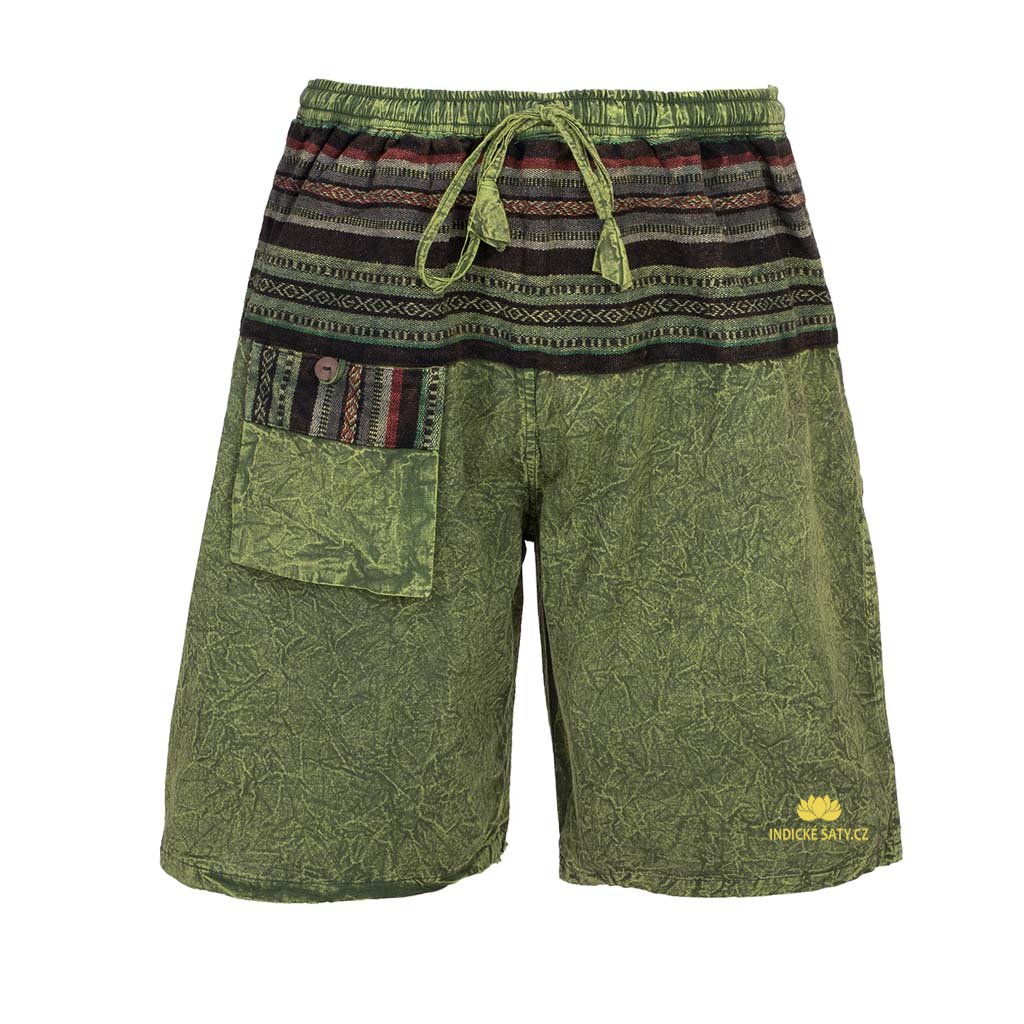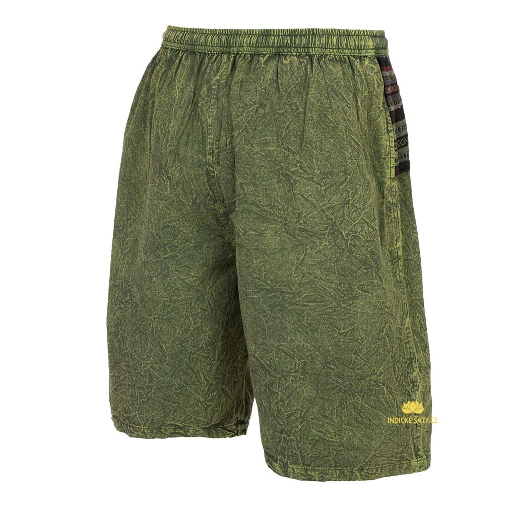 Stonewashové bavlněné kraťasy s tkaným pasem a kapsičkou zelené
