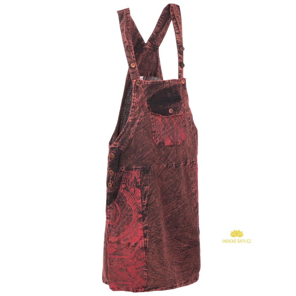 Ramínka jsou delší, řešená na tři kokosové knoflíčky, díky tomu můžete velikost šatů přizpůsobit. Tři kokosové knoflíčky najdete také v pase po obou stranách. Na přední straně šatů je kapsa na knoflíček, dvě kapsy jsou po stranách - všechny kapsy zdobí tisk. Ze zadní strany jsou šaty jednobarevné stonewashové.