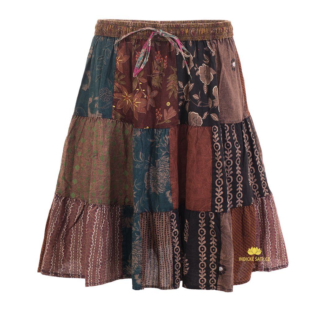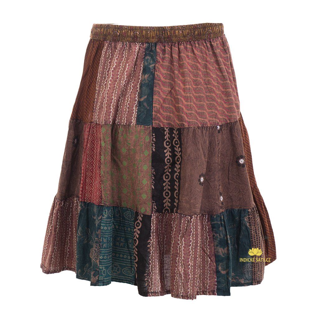 Středně dlouhá bavlněná sukně patchwork Nagar hnědá