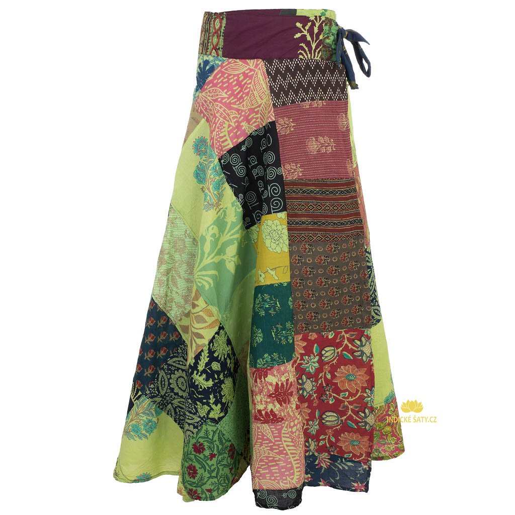 Zavinovací bavlněná sukně patchwork Nagar zelená